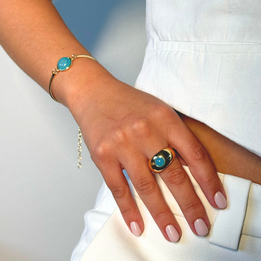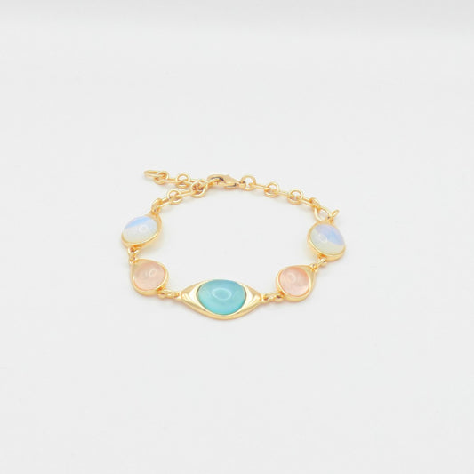 Pulsera Spot Opalina, Ágata azul cielo y Cuarzo rosa