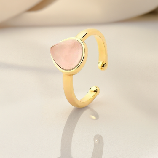 Anillo meñique Basic ajustable gota Cuarzo rosa