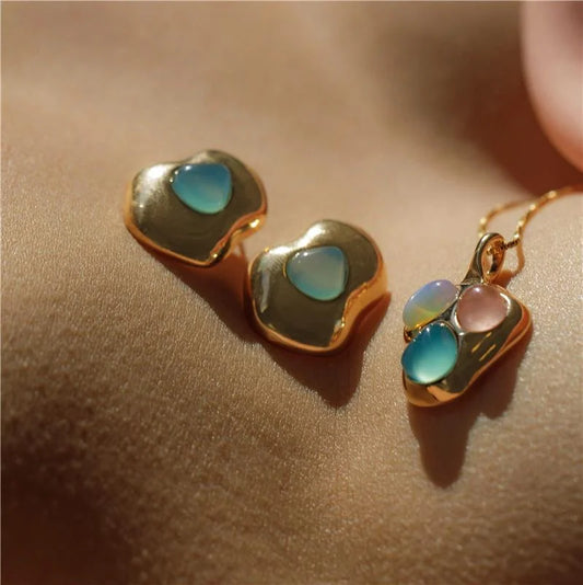 Pendientes Spot piedra cabujón orgánico Ágata azul cielo