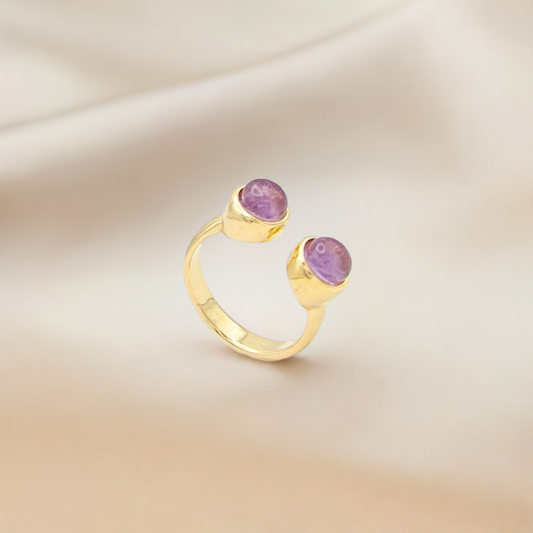 Anillo Basic ajustable doble piedra cabujón Amatista